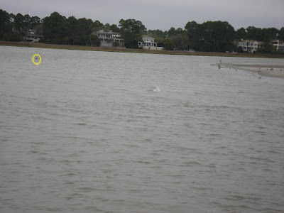 OK – you can’t really tell, but there were dolphins swimming right off the shore here. I circled one with yellow :)