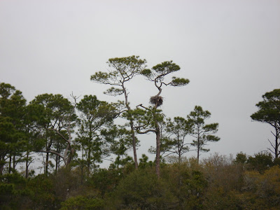 We ended up seeing six alligators total. Here are #5 and #6 (the biggest two we saw):We also saw an eagle and his nest (nest in the center tree of the picture below):