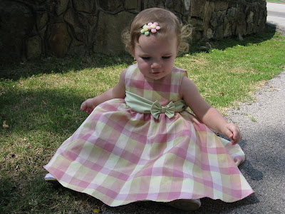 Ali playing in the grass, in spite of her dressed-up-ness: