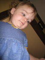There were a few interruptions, like a long string of her “tooting”, laughing, and then announcing “TOOT!!” (Daddy’s been teaching her some new tricks), but she really did actually lay down, very still (except for the arching of her back and straining for the toots), for TWELVE WHOLE MINUTES before she was standing up in bed, reaching for the pictures hung precariously close to the bed, pointing and naming “Daa-y! Meme!! Ayi!!”.