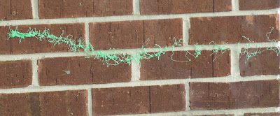 Later that afternoon, Chris is pumping gas, and I happen to look at the wall of the gas station: Bright GREEN silly string!!!