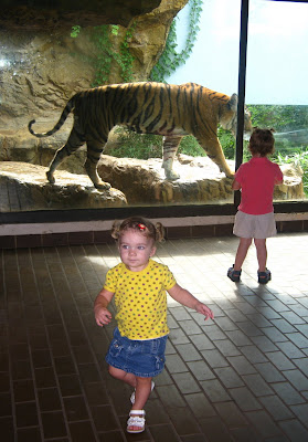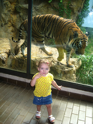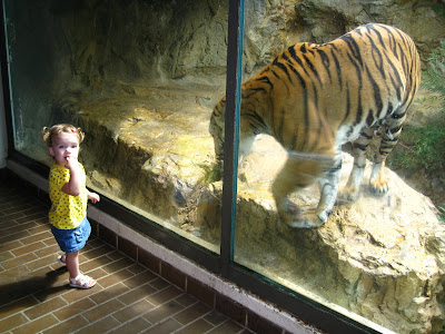 Of course I wanted a picture of Ali with the tiger, so I urged her to go see him again. All of the pictures that I got show her looking VERY trepidatious about being so close to him, which is kind of fitting.
