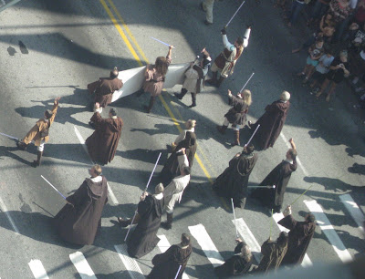 THEN we looked out the window. And alas, there was a . . .very interesting. . .parade going on right outside!!