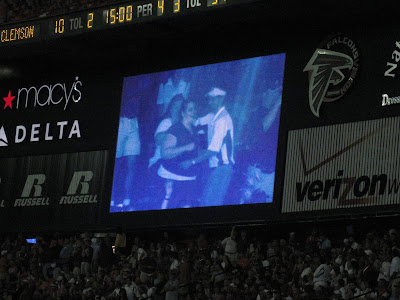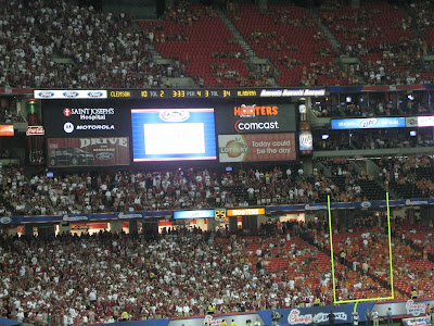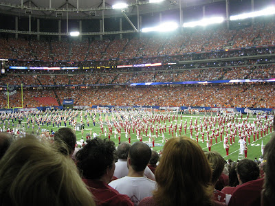 Here’s a picture of the real Million Dollar Band (as opposed to the crazie version) and the Clemson band playing the National Anthem together:OK. Here’s a pic of the game: