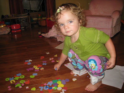 Ali and I have been “playing” with shapes, letters, numbers and colors lately. She has gotten to a point where she can be focused for a longer period of time, and she really enjoys these type of learning games.