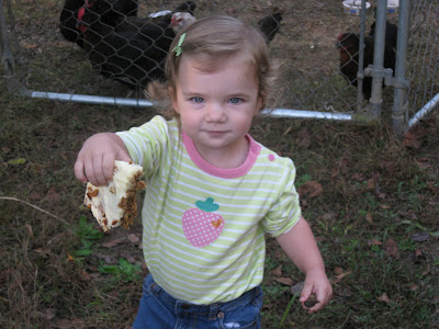 One bite for the chickens. . .And one bite for Ali (who didn’t find it stale at all):
