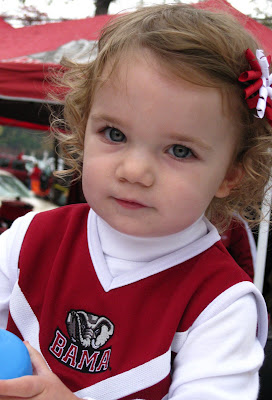 (right after I told her that Daddy was on TV, Tommy Tuberville, Auburn’s coach came on the screen): Daddddy!!! Heeeey Daddy!! (I’m sure that Daddy will be sooo happy that he was confused with Mr. Tuberville.)