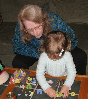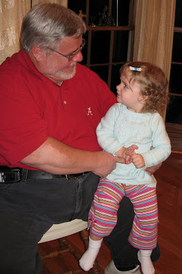 And in general visited with everyone! She was so excited she went past the point of “social graces”. In her excitement, during a jumping up and down and laughing with Papa series, she announced to him (very accurately, I might add), “Ali pooped!!”. Funny though, he didn’t fall for the line that “the rule is, whoever she tells gets to change it!”
