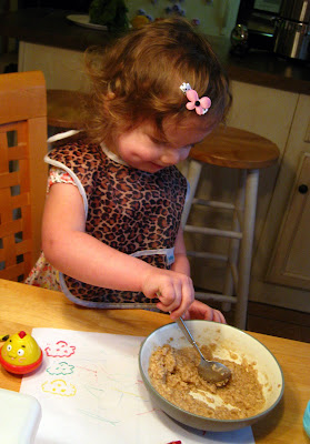 Working on eating with a spoon. . .with something nice and sticky so it stays on.